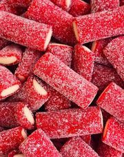 Sukker, glukosesirup, syrer (sitronsyre, eplesyre), smaksstoffer, farger (E100, E129, E133).