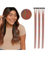 Disse tinsel extensions gir håret ditt et glitrende løft uten mye styr. De er lette å bruke, og kan enkelt integreres i din egen frisyre for en unik stil. Enten du skal på en konsert, en temafest eller bare vil skille deg ut, er disse glitrende rosa trådene det perfekte tilbehøret.
