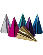 6 stk gullfargede partyhatter med strikk under haken slik at de sitter godt på hodet. - Store bestillinger