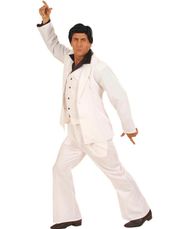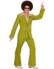 70 talls herrekostyme bestående av jakke og bukse med retro damaskmønster. Bukse med knapp, glidelås, strikk i korsrygg og slengbein. Jakke med krave, pyntelommer og lukkes med to knapper.