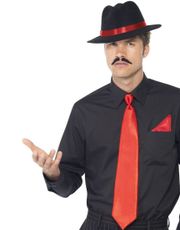 Svart mafiakostyme til mann bestående av jakke med skjortefront, bukse og slips. Komplimenter gjerne med mafiahatt og våpen, alt finer du her i vår nettbutikk :) - Størrelsestabell