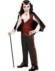 Kostymet kommer i en klassisk sort og rød fargekombinasjon, med et lekkert design som kombinerer gotisk eleganse med tidløs sjarm. Den dramatiske, høye kragen og de puffete ermene gir et majestetisk uttrykk, mens de røde detaljene tilfører en ekstra touch av luksus.