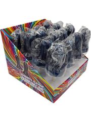 Formet som en morsom smokk, er denne godteripinnen både en visuell og smakfull fryd. Den dype blå fargen gir en følelse av luksus og mystikk, og gjør den til et blikkfang uansett hvor du nyter den.
