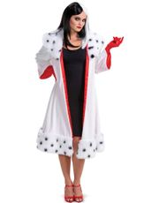 Dalmatinerkostyme i myk plysj til både jente og gutt består av jumpsuit med hale og hette med hode. - Størrelsestabell