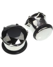 Akrylplugg i svart med motiv av en djevel i midten. Dette en plugg av typen som kan skrues opp slik at du slipper å tvinge den på.