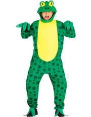 Regn / festivalponcho med Froskemotiv. Ponchoen er lengre bak, har hette med ører og lomme foran.