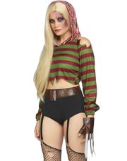 Vår Freddy Krueger kostyme er nøye laget for å gjenskape hans skremmende utseende fra filmene. Det inkluderer den klassiske brune hatten som han alltid bærer, samt den ikoniske røde og grønne stripete genseren som har hjemsøkt marerittene våre i generasjoner.
