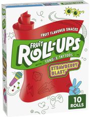 Fruit Roll-Ups kommer med morsomme Tongue Tattoos! Bare legg en bit på tungen, trykk, og voila - en kul tatovering for å vise frem til vennene dine. Perfekt for bursdager, skolelunsjer, eller når du bare trenger litt ekstra moro i hverdagen.