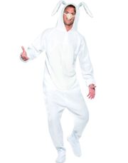Grått kaninkostyme består av jumpsuit og hette. Dyrekostymet kan brukes av dame eller herre.