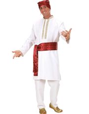 Gullfarget indisk hatt pyntet med sten, fjær og hengene perler på sidene. Bruk denne til ditt inderkostyme og andre lignende kostymer for et komplett antrekk. - Store bestillinger