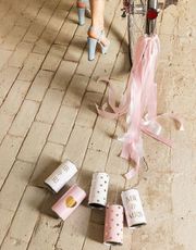 - Hvit satinbånd med lengde på 25 m og bredde på 1,2 cm