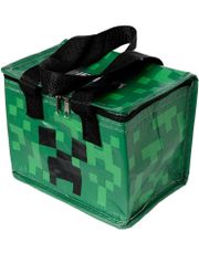 Gjenbruks kjølebag med motiver av fra Minecraft, med Minecraft logoen på lokket og forskjellige ansikt og blokker fra spillet rundt baggen. Deler av kjølebagen er laget av resirkulerte plastflasker, så denne kan du bruke med god samvittighet ;)