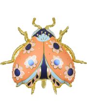 Piercingsmykke til bruk i navle med anheng formet som en hvit blomst med en mariehøne. Navle-piercing med stang i kirurgisk stål (316L) og rund festet kule i toppen.
