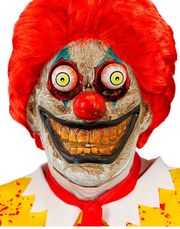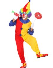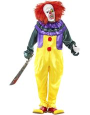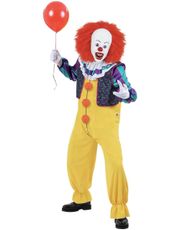 Pennywise inspirert kostyme til dame består av kjole dekorert med røde dusker og matchende krave.
