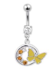 Rød sommerfugl-mønstret tunge-piercing med stang i kirurgisk stål (316L) og flerfarget akryl kuler.
