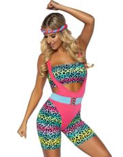Drømmer du om en reise tilbake til det fargerike 80-tallet? Denne grilldressen for dame i rosa, blå og gul er det perfekte valget for deg som vil skille deg ut med stil og komfort. Laget i et mykt og behagelig materiale, gir denne onesize dressen deg friheten til å bevege deg med letthet, enten du skal på temafest eller bare vil ha en avslappet dag.