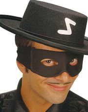 Svart zorrohatt til barn med snor som du kan bruke sammen med ditt zorrokostyme.