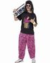 Tøft 80-talls kostyme til mann består av t-skjorte med trykk og sebra stripete bukse. Komplementer gjerne ditt kostyme med parykk, kostymesmykker og oppblåsbare effekter.