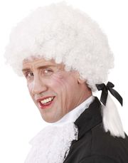 Venetiansk svart kappe i urolig fløyel med lenke i halsen. Kappen har lang skulder flapp og medfølgende hvitt halstørkle.
