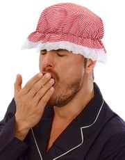 Morsomt voksen babykostyme blomstrete skjorte og hodepynt, hvit bleie og smekke.